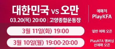 - 오만전 현장 판매: 3월 20일(목) 오후 2시 / 고양종합운동장