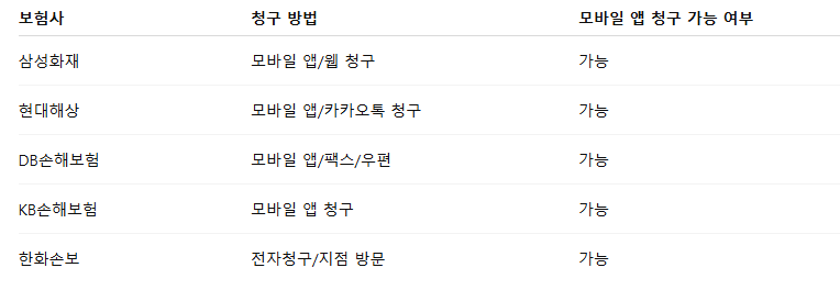 - 보험사 모바일 앱 활용으로 간편 청구 가능