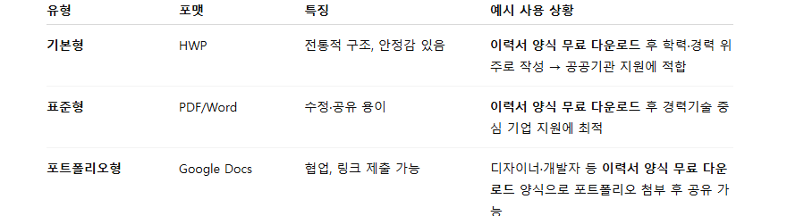 이력서 양식 무료 다운로드 최신 완전 가이드