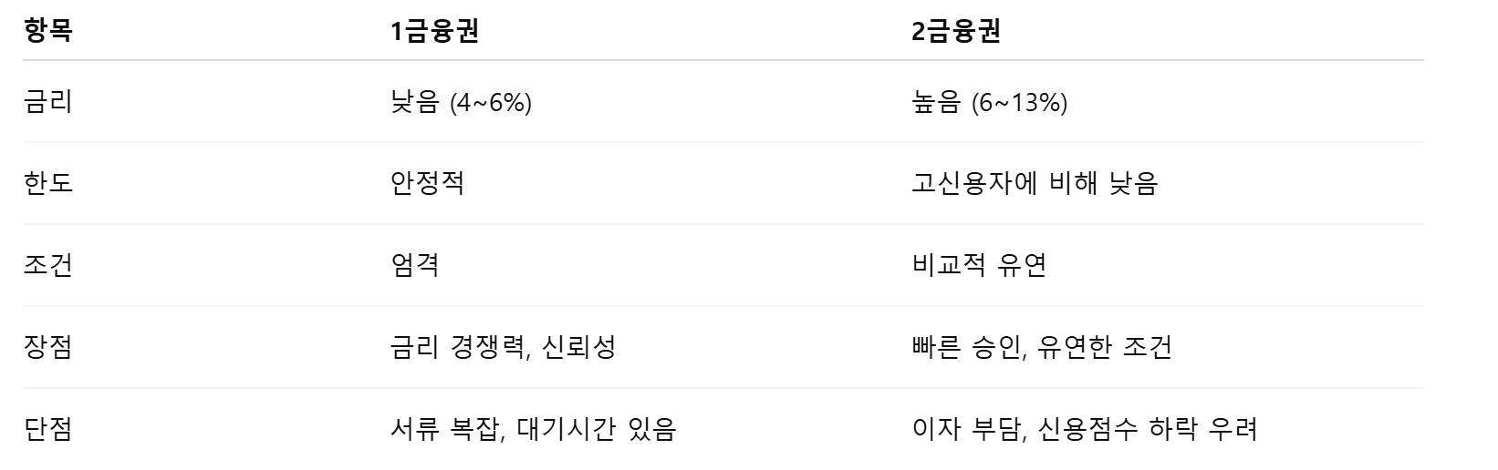 단기 자금이 필요한 경우 2금융권도 대안이 될 수 있지만, 장기 상환 또는 높은 금액이 필요하다면 반드시 1금융권 우선 접근이 권장됩니다.